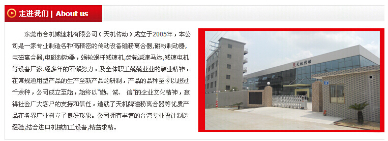 東莞天機傳動(臺灣天機牌)專業生產銷售中空軸磁粉離合器,法蘭盤輸入磁粉離合器,雙軸磁粉離合器,微型磁粉離合器以及磁粉制動器張力控制器,廠家價格實惠。產品使用的進口原材料,并通過ISO9001國際質量認證和CE認證,質量有保障。